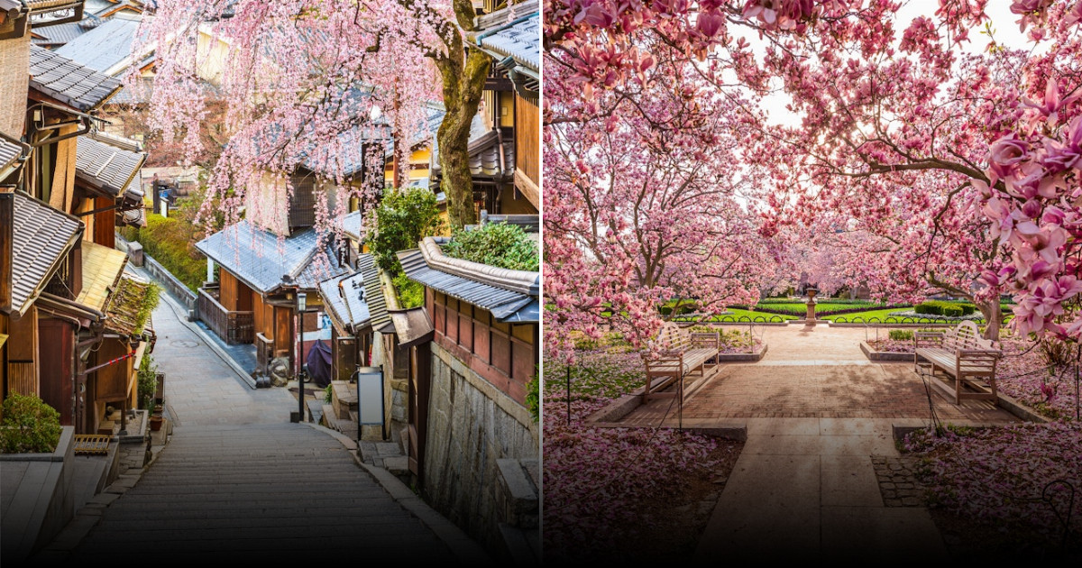 Japonia to klasyka dla miłośników sakury. Tradycja hanami (podziwianie kwiatów) liczy sobie wieki: mieszkańcy zbierają się pod rozkwitłymi gałęziami, urządzają pikniki i cieszą się pięknem natury. W Kioto najbardziej znanymi miejscami do oglądania kwitnienia są park Maruyama i góra Yoshino, gdzie około 30 tysięcy wiśniowych drzew tworzy bajeczne krajobrazy.