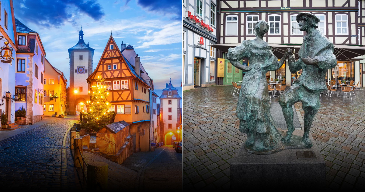 Kluczowe punkty: Rezydencja w Würzburgu (barok, UNESCO), Rothenburg ob der Tauber z dobrze zachowaną średniowieczną zabudową, Dinkelsbühl z bramami miejskimi, Hohenschwangau i Neuschwanstein – inspiracja dla zamku w bajkach filmowych.