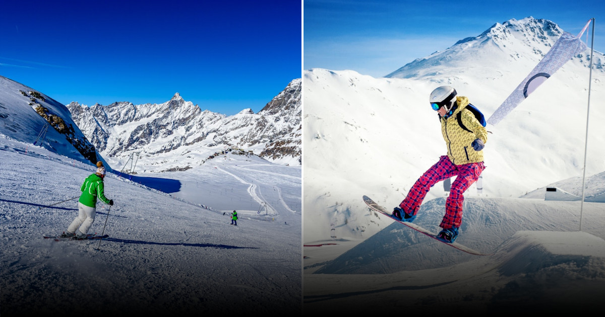 Cervinia, znajdująca się pod majestatycznym Matterhorn, oferuje możliwość jazdy nawet latem dzięki swoim lodowcom.
